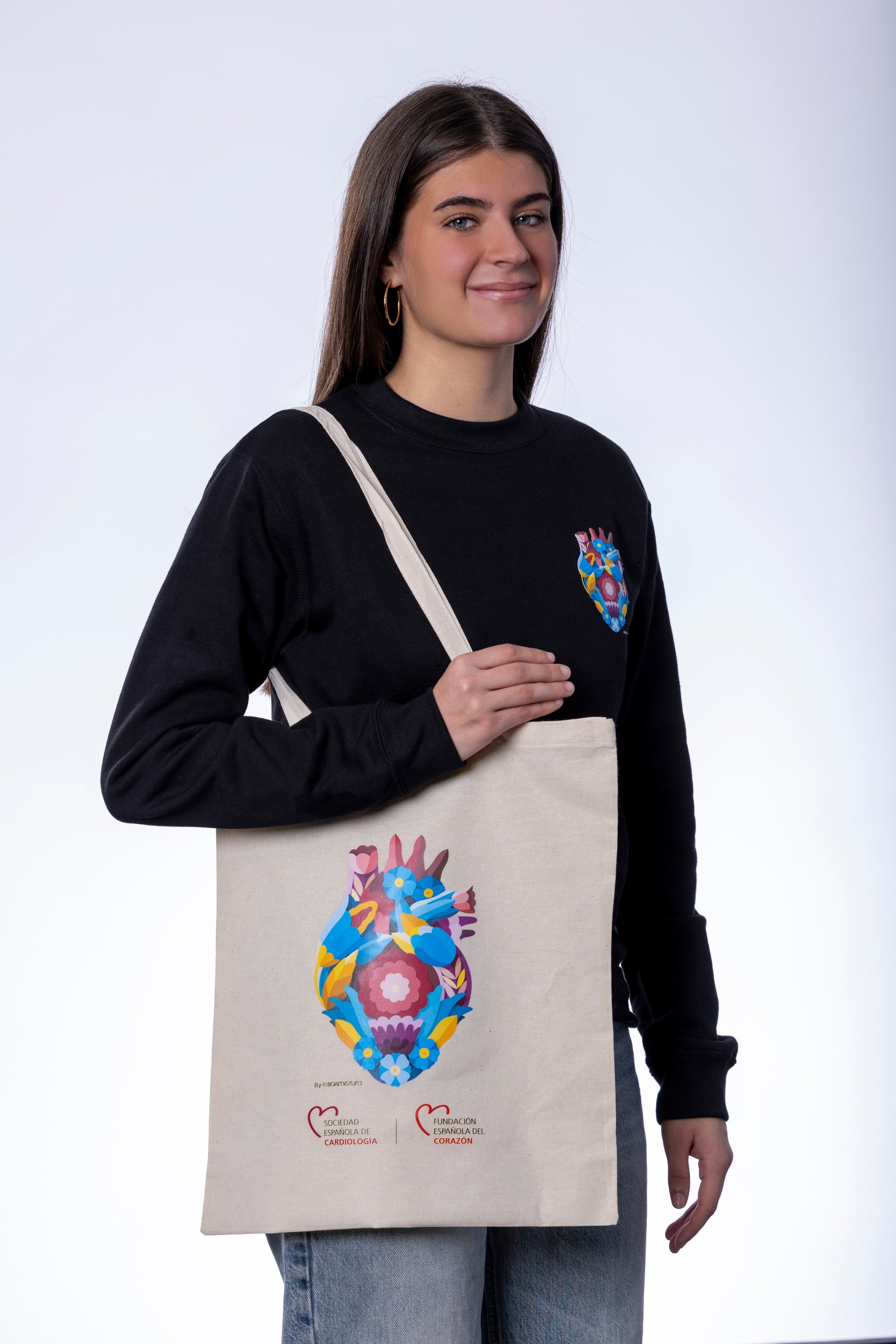 Nuestra bolsa ecológica de algodón, con asas largas y diseño natural es resistente y sostenible.