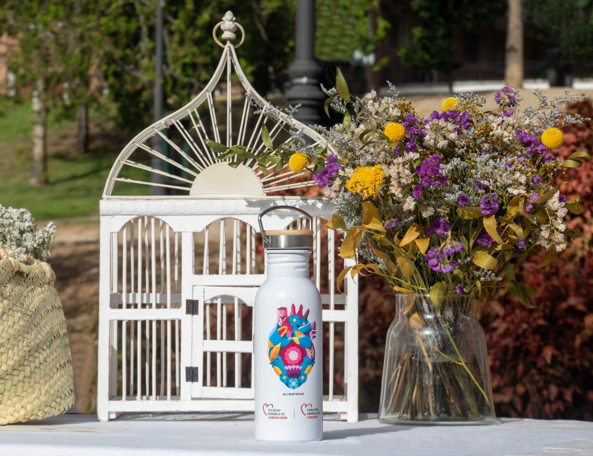 Botella de acero inoxidable con tapón de bambú y asa vintage. 750 ml. Incluye caja individual.